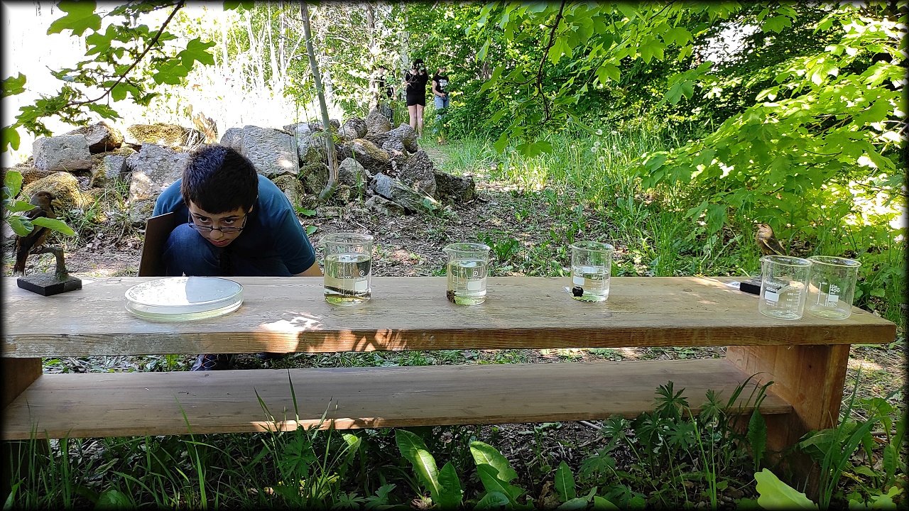 A tentokrát dokonce bez deště! Opět jsme poznávali živočichy a rostliny najednou. Všechny exempláře rostlin byly živé, na svých stanovištích. Preparáty živočichů byly doplněny několika živými ukázkami. I živočichové byli zasazeni do svého prostředí.